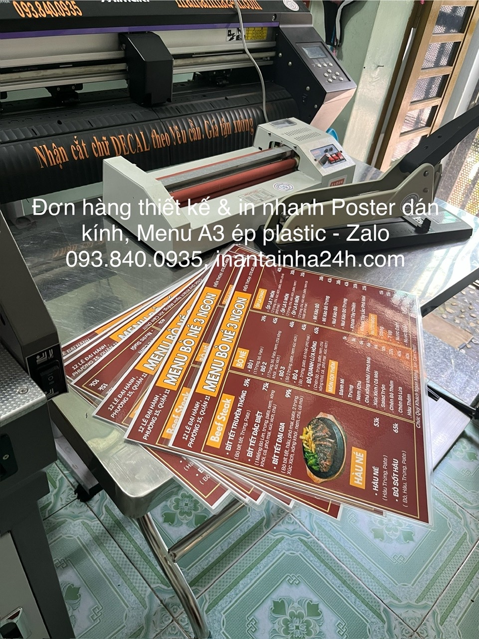 MENU IN GIẤY CỨNG ÉP PLASTIC