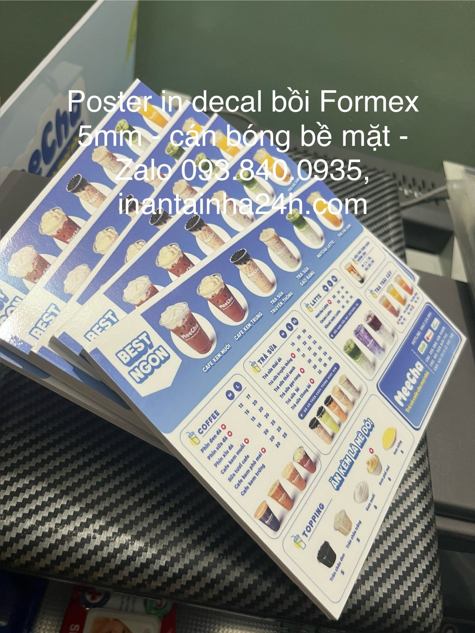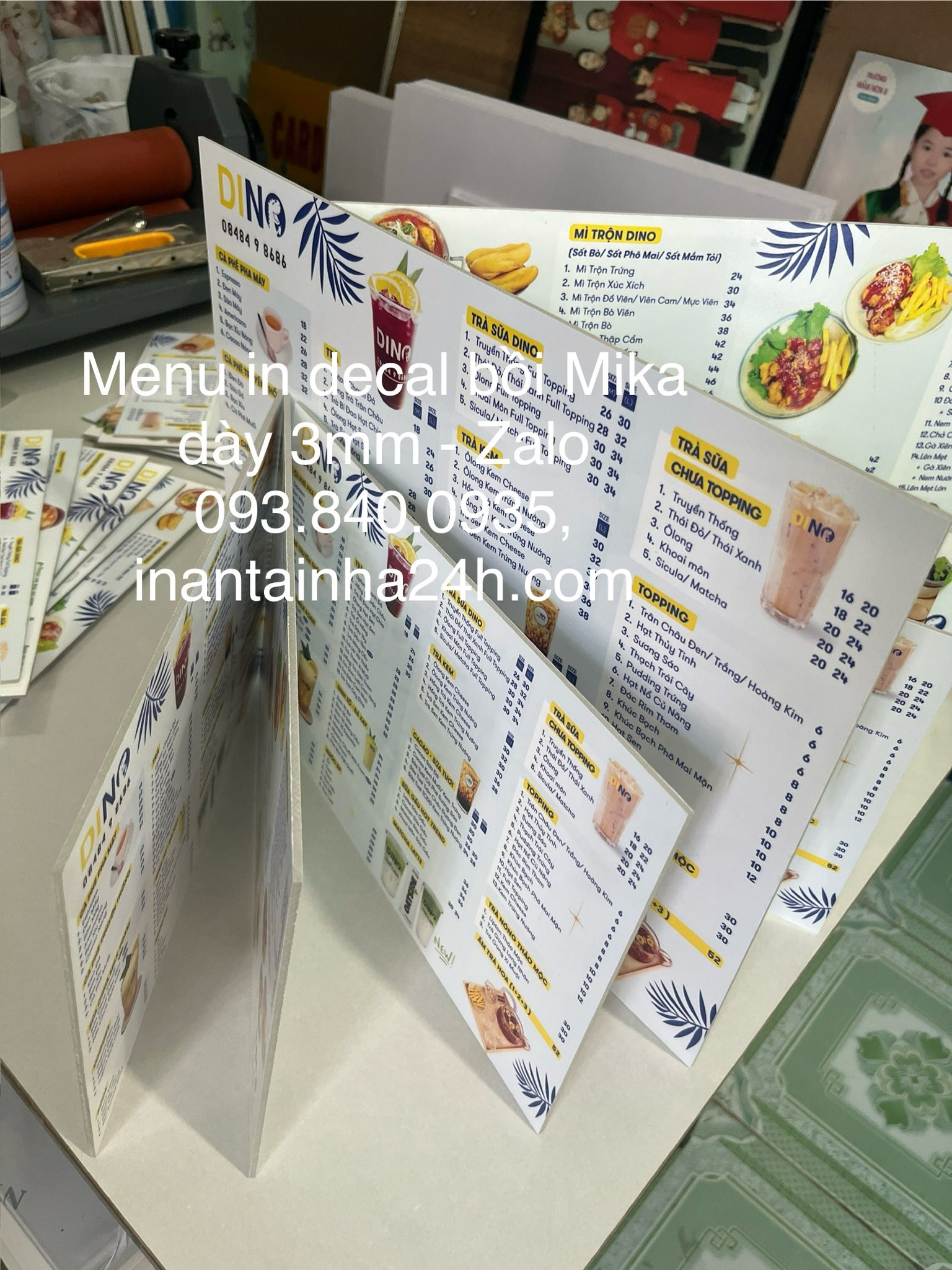 MENU IN DECAL BỒI TẤM MIKA DÀY 3MM
