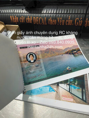 - Giấy ảnh RC kháng nước, mực Pigmen bền màu, ép lụa theo YC.