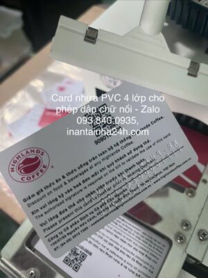 - Thẻ PVC 4 lớp in sắc nét chi tiết nhỏ, dập chữ nổi rất sang trọng.