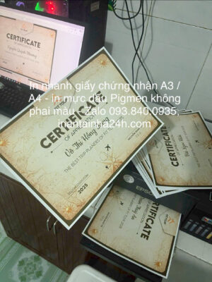 - In giấy chứng nhận, phiếu hẹn giấy dày C300, không cán màng, in mực dầu không phai màu