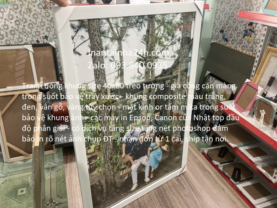 In tấm ảnh + cán màng lụa or Mika + đóng khung