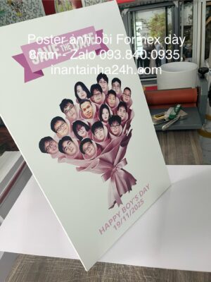 In tấm ảnh + cán màng lụa + ép lên tấm Formex dày 5mm (+ đóng khung)